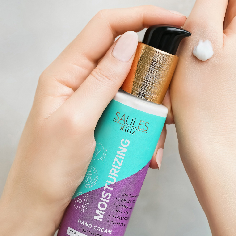 Hellästi hoitava ja kosteuttava käsivoide kätevässä pumppupullossa