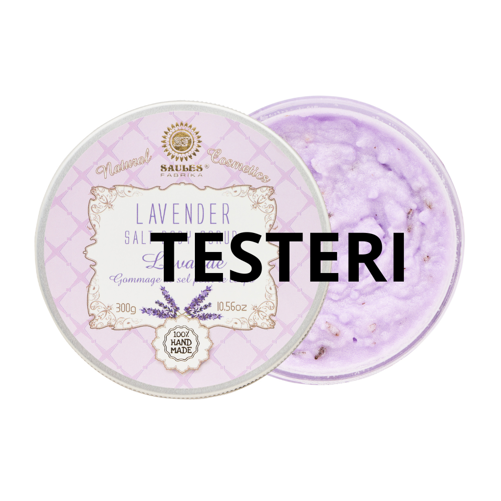 INCI: Maris Sal, Sodium Chloride, Vitis Vinifera Seed Oil, Theobroma Cacao Butter, Cocos Nucifera Oil, Lavandula Angustifolia Flower, Parfum, Benzyl Benzoate, Benzyl Salicylate, Limonene, Linalool, CI 14720, CI 42090.