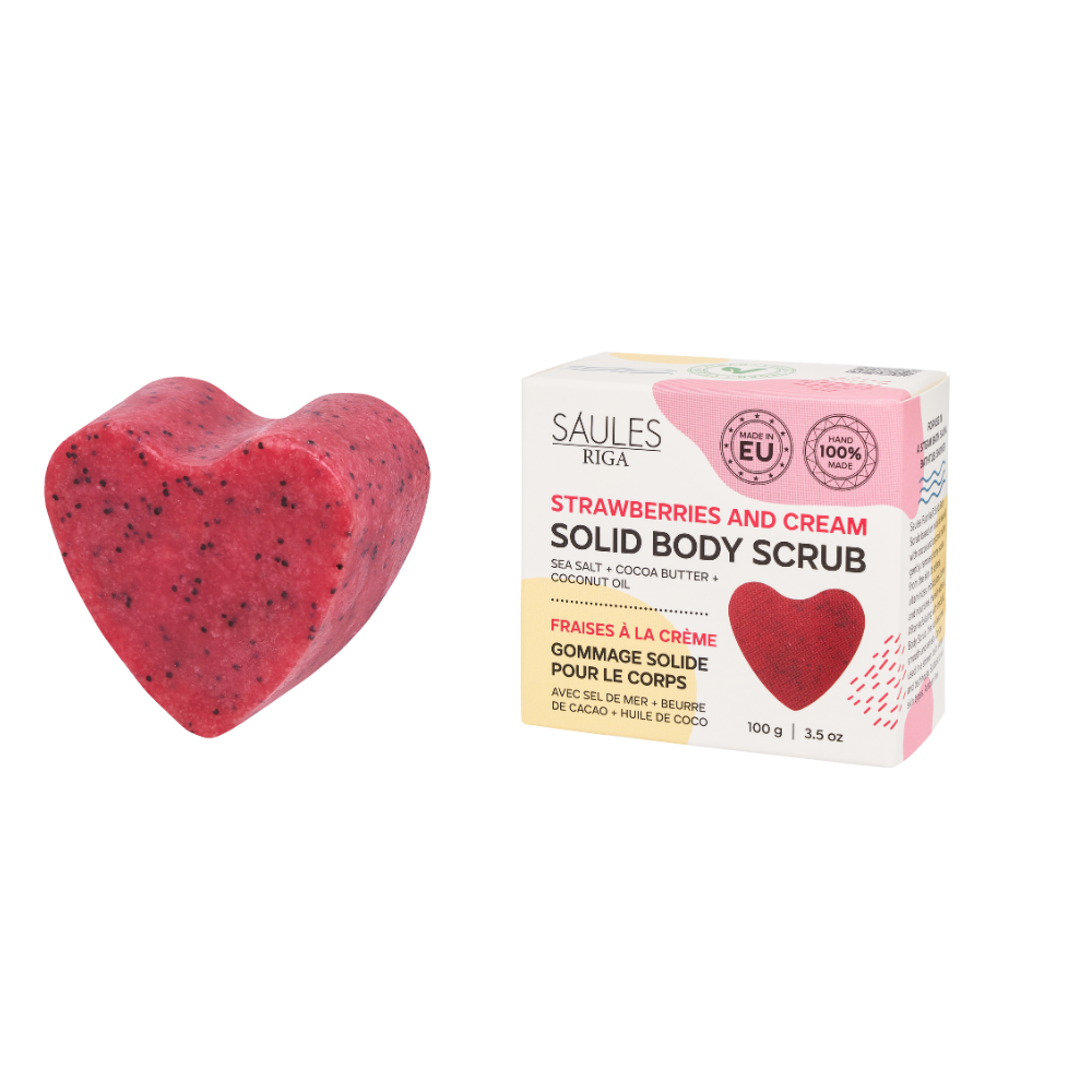 Saules Fabrika Solid Body Scrub Strawberries and Cream 100gSaules Fabrika Solid Body Scrub Strawberries and Cream – Kuoriva Suolasaippua 100g